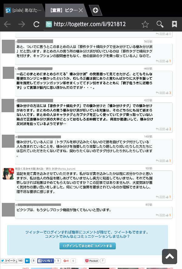 あなたにはPixivでブックマークや評価をしてくれる人も、ツイッターで会話する人たちも、同人誌を手に取って読んでくれる人も大勢います。あのブログの存在を(消極的にでも)許すことで、これまであなたが積み上げてきたものを壊すようなことはなさらないで下さい